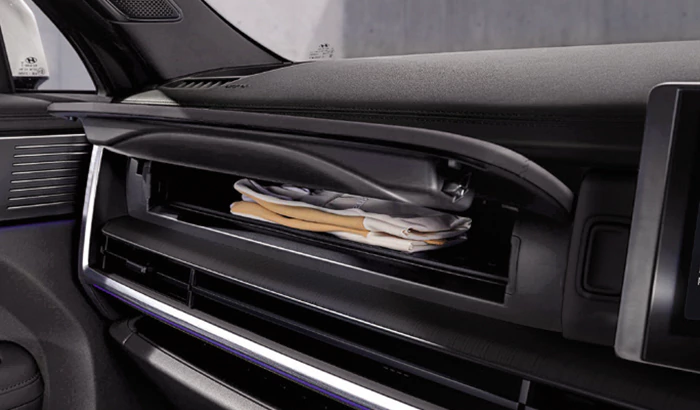 Interior The All New SANTA FE yang premium dan luas dirancang dengan sempurna untuk meningkatkan kenyamanan serta memudahkan aktivitas Anda di dalam kabin, menjadikan setiap perjalanan sebuah pengalaman tak terlupakan.